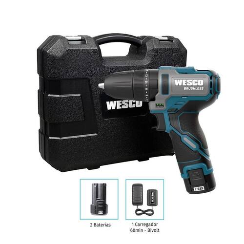 Parafusadeira/furad impacto brushless wesco ws2588k2 12v 2,0h biv 2 bat Uma das mais potentes da sua categoria, com motor sem escova. Maior praticidade facilitando o acesso a lugares estreitos e durabilidade, acabou de encontrar A ferramenta possui 3 funções: perfurar com e sem impacto e parafusamento. Características: Mandril sem chave Velocidade variável e reversível Tamanho super compacto Indicador led de carga da bateria 172mm contra as de carvão com 205mm Capacidade do mandril: 10 mm Capacidade da perfuração máxima Aço: 10 mm , madeira 25 mm , alvenaria 10 mm Torque máximo: 38 n.M Velocidade sem carga 0-400/ 0-1650/min Taxa de impacto: 0-6000/ 0-24750bpm Número de posições de embreagem: 20+1+1 10 mm , madeira 25 mm , alvenaria 10 mm Possui de 12 meses. Itens que acompanham: 02 baterias 01 carregador 60min - bivolt 01 maleta Marca: Não Informado Ean: 7909463111687