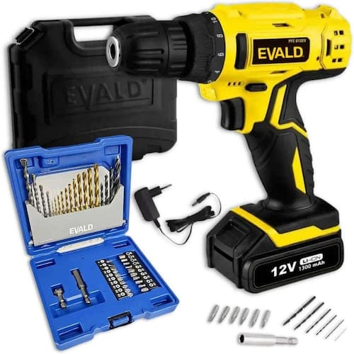 Parafusadeira a Bateria 12V Bivolt PFE-12EV com Maleta e Kit de Brocas 41 Peças EV-EBB41 EVALD