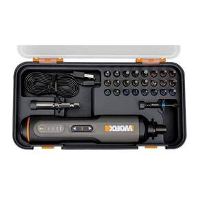 Parafusadeira a bateria 4v screwdriver pen worx wx240 Parafusadeira a bateria leve, compacta e autêntica com corpo emborrachado para garantir uma experiência ainda melhor, trabalhando com precisão, conforto e firmeza. - marca: worx - modelo: wx240 - ela possui botão reverso para parafusar e desparafusar e botão de ajuste de torque com 3 indicadores para regular às condições de trabalho e as diferentes forças de torção. - esse mesmo botão serve como indicador de carga de bateria e índice de torque selecionado. - a wx240 também conta com duas luzes de led nos dois lados do mandril para te ajudar a iluminar as áreas mais escuras. - a ferramenta ainda acompanha uma caixa de armazenamento bastante versátil e organizada com tampa transparente. - seu kit conta com 24 bits diferentes, categorizados por cores, além de um bit de impacto de 50mm, uma haste de extensão magnética e um cabo de carregamento usb de 91cm para carregá-la. - possui 18cm de altura e 35mm de diâmetro, ajustando-se perfeitamente a sua mão. - luz led; - áreas emborrachadas; - reversível; - luz de carga da bateria e torque; - ajuste de torque com indicação. Benefícios: - construção com 3 engrenagens proporcionam diferentes torques para diferentes situações; - botão com reversão facilita remoção de parafusos; - indicador de carga de bateria; - luz led facilita o trabalho em áreas mais escuras. Especificações técnicas: - bateria: 1.5 ah lithium-ion; - velocidade sem carga: 300 rpm; - torque máximo: 2.5 n.M; - duração da bateria em vazio : 45 min; - tempo para carregar a bateria: 1.5 h; - tensão inicial: 4v; - tensão nominal: 3,6v; - peso: 0.266 kg. Itens inclusos: - 24 bits para parafusar h5, h4, h3, t20, t15, t10, s2, s1, s0, sl5, sl4, sl3, pz2, pz1, ph3, ph2, ph1 ; - 1 bit de impacto de 50mm ph2 ; - 1 haste de extensão magnética de 60mm; - 1 cabo de carregamento usb; - 1 caixa plástica. - : 1 ano. Parafusadeira a bateria leve, compacta e autêntica com corpo emborrachado para garantir uma experiência ainda melhor, trabalhando com precisão, conforto e firmeza.