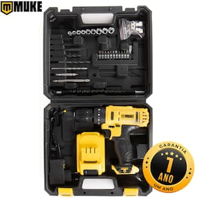 Parafusadeira e Furadeira de Impacto a Bateria 12V 3/8 10MM Muke Tools com 30 Acessórios e Maleta