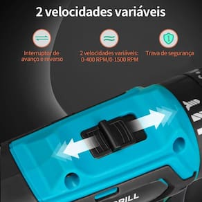Benefícios: Alta potência e desempenho constante Duas velocidades ajustáveis para diferentes aplicações Controle de torque preciso para evitar danos ao material Leve, ergonômica e de fácil manuseio Mandril sem chave para troca rápida de brocas Design moderno e resistente