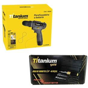 Parafusadeira e Furadeira T12 12V + Kit Chaves 40 Pçs + Parafusadeira e Furadeira T12 Special Edition 1,2Ah 12V Bivolt Titanium + Kit Chaves Jogo Catraca Reversível Soquetes 40 Peças Maleta Parafusadeira e Furadeira T12 Special Edition 1,2Ah 12V Bivolt Titanium Caracteristicas Especificações Marca: Titanium Modelo: 6212 Potência: 12v Mandril: 0.8 / 10mm Torque: 20 Nm RPM: 0 - 200 / 0 - 1000 Tipo de Bateria: Lithium Ion Velocidade Sem Carga: 0 - 200 / 0 - 1000 Rpm Embreagem: 10mm Diâmetro Máximo da Parafusadeira: 10mm Capacidade de Perfuração em Madeira: 20mm Mandril: Aperto Rápido - Reversível Peso Aproximado: 1 Kg + Kit Chaves Jogo Catraca Reversível Soquetes 40 Peças Maleta Características: O Jogo de soquetes com catraca Titanium, possui 40 peças, ideal para ou caseiro, para apertar ou soltar parafusos e porcas, fabricado em aço carbono oferecendo melhor resistência. A sua versatilidade de tamanhos permite inúmeras combinações para realizações de trabalhos. Sua chave catraca é articulada o que dá praticidade no manuseio, possibilitando posições de acordo com a necessidade de uso. Possui cabo emborrachado para uma pegada mais confortável e ergonômica. Acompanha estojo compacto para armazenamento. Especificações: Marca: Titanium Modelo: 5520 Material: Aço carbono Medidas da Maleta: Largura: 12cm Comprimento: 18cm Profundidade: 4cm Peso total: 1,3Kg Itens Inclusos: Parafusadeira e Furadeira 01 Carregador Bivolt 01 Bateria 12v 1,2Ah 1 Catraca reversível e articulada 1/4 1 Adaptador 14 Soquetes em polegadas 1 Adaptador para soquetes 8 Bits Allen: 7 Bits Tork 3 Bits Phillips 2 Bits Quadrado 3 Bits Fenda 1 estojo Marca: Não Informado