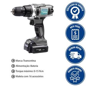 - A parafusadeira/furadeira 12 V Tramontina à bateria 16 peças é a escolha ideal para quem busca uma ferramenta versátil e completa para suas tarefas. Desenvolvida para agregar em seu trabalho, ela serve tanto para furar, quanto para parafusar superfícies.