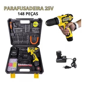 Parafusadeira furadeira 02 bateria 25v 148 pcs profissional Parafusadeira furadeira similar dewalt profissional 02 baterias 25v 148 peças Parafusadeira/furadeira à bateria é indicada para soltar e apertar parafusos fazer furos em madeiras ou metais. Conta com carregador bivolt automático com tempo de carregamento da bateria de 3 a 5h. Possui regulagem para 18 posições de torque e 1 posição para perfuração, led para melhor visibilidade do local de trabalho e cabo com revestimento emborrachado, proporcionando maior conforto ao operador. Possui 02 baterias de íons de lítio que confere alta eficiência de operação e indicador de carga da bateria. - marca: nakasaki - carregador bivolt - mandril: 3/8 - 10mm - torque: 19 nm - quantidade de posições de torque:18 posição es - rotação máxima: 0 a 1850 rpm - bateria: 25 v - 1.5ah - ferramenta intercambiável - possui controle de torque - não possui impacto - tipo da bateria: li-ion - lanterna embutida - capacidade de perfuração da madeira: 10 mm - capacidade de perfuração do metal: 6 mm - peso do produto na embalagem: 1 kg Itens inclusos: - 02 baterias de lítio 2v - 01 carregador de mesa bivolt; - 01 ponta dupla para parafusar - 13 brocas - 60 bits - 01 adaptador para extensor - 01 alongador 25cm flexível - 09 soquetes sextavados - 01 estojo com parafusos e buchas -01 trena - 01 fita isolante - 01 chave manual Equipe especializada Marca: Nakazaki