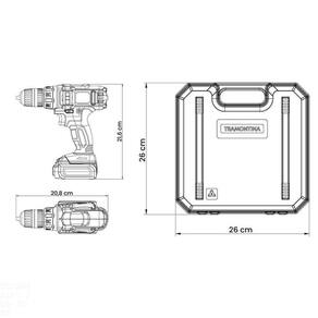 Acompanha: maleta para transporte; carregador bi-volt; adaptador de bits 55 mm; 4 bits ponta chata 3, 4, 5, e 6 mm; 3 bits ponta cruzada PH1, PH2 e PH3; 5 bits trafix T07, T10, T15, T20 e T25 e manual de instruções.Características GeraisEAN137891114174755DUN1417891114174752NCM8467.29.92Peso Líquido1,5000 kg.Peso Bruto1,7000 kg.Metragem0,006422 m.Dimensões Embalagem (Compr. X Larg. X Alt.)95x 260x 260 mm.Dimensões Produto (Compr. X Larg. X Alt.)260x 260x 10 mm.Observações