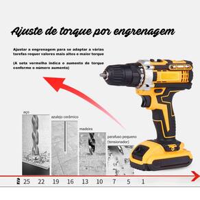A Parafusadeira a Bateria foi projetada para unir praticidade, potência e versatilidade em uma única ferramenta compacta e eficiente. Perfeita para uso doméstico e profissional, é ideal para montagens, instalações e apertos de parafusos em madeira, metal e alvenaria leve. Equipada com uma bateria de íon de lítio de 21V, oferece maior autonomia, desempenho consistente e liberdade total de movimento durante o uso.