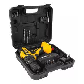 1 parafusadeira/furadeira, acompanha: 1 maleta, 1 bateria de 12 v, 1 carregador bivolt automático, 6 brocas de aço rápido 1,5 mm, 2,5 mm, 3,0 mm, 4,0 mm, 5,0 mm e 6,0 mm , 6 bits 2 fendas 5 mm e 6 mm , 2 phillips ph1 e ph2 e 2 pozidrive pz1 e pz2 e 1 soquete magnético encaixe de 1/4