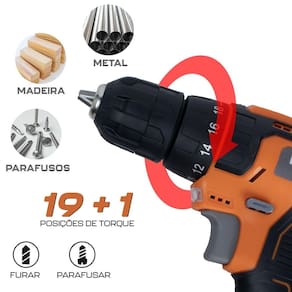 Parafusadeira furadeira bateria 12v maleta 73 peças rayco Apresentamos a parafusadeira furadeira bateria 12v com maleta e 73 peças - a solução completa para todas as suas necessidades de fixação e perfuração esta ferramenta versátil e potente é projetada para proporcionar praticidade e eficiência em suas tarefas diárias Diferenciais: - potência e desempenho: equipada com um motor de 12v, nossa parafusadeira furadeira oferece potência suficiente para lidar com uma variedade de aplicações, desde simples parafusamento até perfurações mais exigentes. Bateria duradoura: - bateria de longa duração: prmite que você trabalhe por mais tempo sem interrupções. Nunca mais se preocupe com a falta de energia no meio de um projeto importante. - versatilidade 2 em 1: alterne facilmente entre as funções de parafusadeira e furadeira para atender às suas necessidades específicas. Um equipamento essencial para projetos em casa, marcenaria e manutenção. - kit completo: esta parafusadeira furadeira vem acompanhada por uma maleta robusta que contém 73 peças, incluindo uma variedade de brocas, pontas de parafusar e acessórios, garantindo que você esteja preparado para qualquer tipo de trabalho. Especificações - marca: rayco - modelo: r22245 - bateria íons de lítio 12v 1.500ah - carregador bivolt - posições de torque: 19 + 1 - capacidade do mandril: 0,8 a 10mm - velocidade: 0 a 700rpm - velocidade controlada no gatilho - bateria de longa duração - luz de led integrada - ação reversível - empunhadura antideslizante - bateria sem efeito memória com indicador de bateria máxima - dimensões da maleta: 27 x 23 x 9 cm - peso bruto: 1,6kg - : 1 ano Itens inclusos - 1 parafusadeira 12v - 1 bateria 12v 1.500ah - 1 carregador bivolt - 2 bits 25mm pozidrive pz1 pz2 - 2 bits 25mm phillips ph1 ph2 - 2 bits 25mm fenda 4mm 6mm - 6 brocas para madeira 1,5mm 2,5mm 3mm 4mm 5mm 6mm - 1 prolongador de bits 60mm - 10 parafusos 3,5x25mm - 10 parafusos 4x25mm - 10 parafusos 4,8x30mm - 30 buchas 5mm - 30 buchas 6mm - 30 buchas 8mm - 1 organizador para parafusos e buchas - 1 maleta Ean: 7734625997911