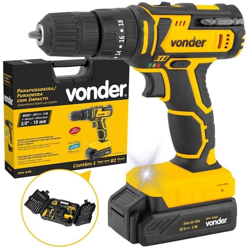 Conteúdo da embalagem: 1 Parafusadeira/Furadeira Com Impacto A Bateria 20 V Pfv 078 Vonder