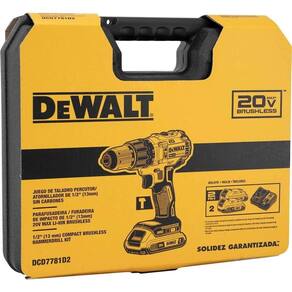 Conteúdo da embalagem: 1 Parafusadeira/furadeira de impacto. Acompanha: 1 carregador de bateria bivolt, 2 baterias 20 V - 2 Ah e 1 maleta plástica.
