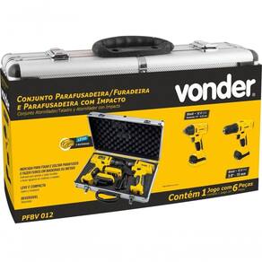 Conteúdo da embalagem: 1 - Parafusadeira / furadeira com mandril 3/8 + 1 parafusadeira com impacto. Acompanha: 2 - baterias de íons de lítio, 1 - carregador bivolt e 1 maleta de alumínio.