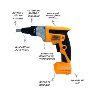 Parafusadeira P/ Drywall 1/4 a Bateria 20V CDSLI2042006 Ingco