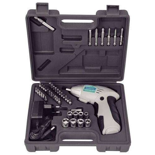 Especificações Torque máximo: 3 N.m Velocidade reversível Bateria interna Ni?Cd 4,8 V Itens Inclusos Maleta de transporte Adaptador para soquetes 8 soquetes sextavados 6 a 13 mm Adaptador de bits 55 mm 5 bits ponta chata 3 a 7 mm 7 bits hexagonais variedade 4 bits ponta cruzada Phillips 4 bits ponta trafix Pozidrive 8 bits Trafix T10 a T45 2 bits longos ponta chata 4 mm e 6 mm Manual de instruções Indicações de Uso Ideal para reparos domésticos em paredes e marcenaria Perfeito para montar móveis e estruturas leves Indicado para manutenção elétrica leve em residências Excelente para ajustes em bicicletas e equipamentos portáteis Utilizado por profissionais em oficinas domésticas para fixação precisa Perguntas Frequentes (FAQ) Pergunta: Qual é a capacidade da bateria interna?