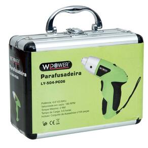 A Parafusadeira W-Power vem em uma maleta portátil juntamente com 104 peças. Assim, as atividades rotineiras são realizadas com muito mais facilidade, graças à grande variedade de ferramentas disponíveis.