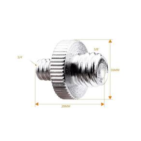Parafuso Adaptador 1/4' X 3/8' Macho Para Estúdios De Fotografia E Filmagem O Parafuso Adaptador 1/4 para 3/8 Macho x Macho para Estúdios de Fotografia e Filmagem, este Adaptador de parafuso é ideal para montagem de acessórios em seus equipamentos em Estúdios de Fotografia e Filmagem como Câmeras, Tripés, Cabeças de Tripés, Monopés, Sliders, Monitores, Suportes de Iluminação, entre outros tipos de suportes com encaixe de 1/4 e 3/8. Feito de metal resistente, proporciona maior segurança e estabilidade para o seu equipamento.Feito de aço inoxidável e possuindo bordas serrilhadas de fácil manuseio ele proporciona maior segurança e estabilidade para o seu equipamento.Principais Características: Fácil de usar Durável feito de aço inoxidável Adapta-se em equipamentos com entrada de 1/4-20 6.35mm Rosca Montagem de 1/4-20 6.35mm para 3/8-16 9.52mm Macho x Macho Uso em Câmeras, Tripés, Monopés, Cabeça de Tripés Esférica, Suportes de iluminadores, Monitores de Referência, Sliders, Suportes de Iluminação entre outros acessórios de fotografia e filmagem. Ean: 0700724227904