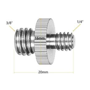 Parafuso Adaptador 1/4' X 3/8' Macho Para Estúdios De Fotografia E Filmagem O Parafuso Adaptador 1/4 para 3/8 Macho x Macho para Estúdios de Fotografia e Filmagem, este Adaptador de parafuso é ideal para montagem de acessórios em seus equipamentos em Estúdios de Fotografia e Filmagem como Câmeras, Tripés, Cabeças de Tripés, Monopés, Sliders, Monitores, Suportes de Iluminação, entre outros tipos de suportes com encaixe de 1/4 e 3/8. Feito de metal resistente, proporciona maior segurança e estabilidade para o seu equipamento.Feito de aço inoxidável e possuindo bordas serrilhadas de fácil manuseio ele proporciona maior segurança e estabilidade para o seu equipamento.Principais Características: Fácil de usar Durável feito de aço inoxidável Adapta-se em equipamentos com entrada de 1/4-20 6.35mm Rosca Montagem de 1/4-20 6.35mm para 3/8-16 9.52mm Macho x Macho Uso em Câmeras, Tripés, Monopés, Cabeça de Tripés Esférica, Suportes de iluminadores, Monitores de Referência, Sliders, Suportes de Iluminação entre outros acessórios de fotografia e filmagem.