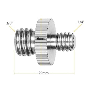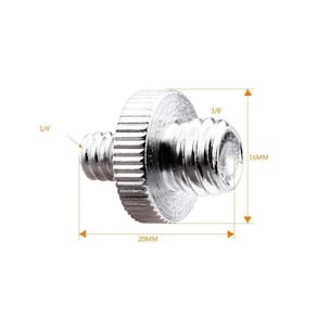 Parafuso Adaptador 1/4' X 3/8' Macho Para Estúdios De Fotografia E Filmagem O Parafuso Adaptador 1/4 para 3/8 Macho x Macho para Estúdios de Fotografia e Filmagem, este Adaptador de parafuso é ideal para montagem de acessórios em seus equipamentos em Estúdios de Fotografia e Filmagem como Câmeras, Tripés, Cabeças de Tripés, Monopés, Sliders, Monitores, Suportes de Iluminação, entre outros tipos de suportes com encaixe de 1/4 e 3/8. Feito de metal resistente, proporciona maior segurança e estabilidade para o seu equipamento.Feito de aço inoxidável e possuindo bordas serrilhadas de fácil manuseio ele proporciona maior segurança e estabilidade para o seu equipamento.Principais Características: Fácil de usar Durável feito de aço inoxidável Adapta-se em equipamentos com entrada de 1/4-20 6.35mm Rosca Montagem de 1/4-20 6.35mm para 3/8-16 9.52mm Macho x Macho Uso em Câmeras, Tripés, Monopés, Cabeça de Tripés Esférica, Suportes de iluminadores, Monitores de Referência, Sliders, Suportes de Iluminação entre outros acessórios de fotografia e filmagem. Marca: Não Informado