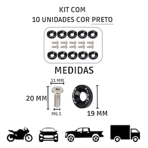 CONTEÚDO DA EMBALAGEM: - 10 Arruelas; - 10 Parafuso M6;