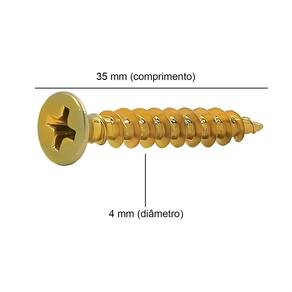 Dimensões: 4,0 mm (diâmetro) x 35 mm (comprimento)Cabeça: Chata, proporcionando um acabamento niveladoFenda: Philips, facilitando a instalaçãoQuantidade: 500 unidades por embalagemMaterial: Aço resistente e de alta qualidadeAplicações: