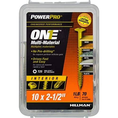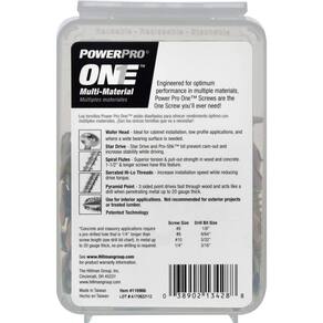 PowerPro One, pacote com 68, #10 x 2,5", zinco amarelo, cabeça de pastilha, parafusos internos multimateriais Star Drive, uso em madeira, alvenaria, drywall e plástico.