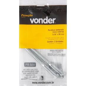 Marca: VonderConteúdo da Embalagem:1 Cartela com 2 parafusos sextavados rosca soberbaDestaques e diferenciais:Possui acabamento zincado, proporcionando maior resistência contra oxidação/corrosãoAplicações e dicas de uso:Indicado para fixações entre duas ou mais partes, como aplicação em madeira, alvenaria e concreto para concreto, necessita utilização de bucha de fixação Características Técnicas:Diâmetro do parafuso sextavado pol : 0.5/16 Comprimento do parafuso sextavado mm : 90,0 mm Marca: Não Informado