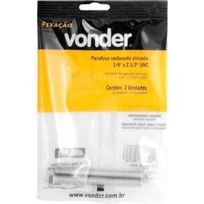 Marca: VonderConteúdo da Embalagem:1 Cartela com 2 parafusos sextavadosDestaques e diferenciais:Possui acabamento zincado, proporcionado maior resistência a oxidação/corrosão.Aplicações e dicas de uso:Indicado para fixações em geral. Utilizado em máquinas e equipamentos industriais, estruturas metálicas, veículos, móveis de aço, entre outros.Características Técnicas:Diâmetro do parafuso sextavado pol : 0.1/4 Comprimento do parafuso sextavado pol : 2.1/2 Medida do sextavado do parafuso sextavado pol : 0.7/16 Tipo da rosca do parafuso sextavado pol : UNC - Polegada rosca grossa Marca: Não Informado