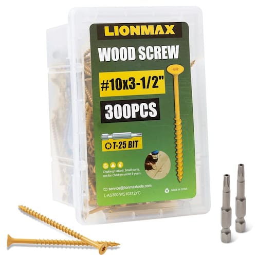Parafusos de madeira externos revestidos a bronze LIONMAX Nº 10 x parafusos de deck de 8,5 cm (3-1/2") Material: Revestimento exterior bronze + aço carbono - Parafusos revestidos de bronze próximos à cor da madeira, mostram limpo em seu projeto de madeira. - O revestimento exterior protege eficazmente os parafusos do convés contra ferrugem e corrosão - Resistente ao clima, parafusos externos ideais para trabalhar em madeira ao ar livre Sistema de acionamento: Star Drive - 6 pontos de contato em parafusos de acionamento em estrela, menos torque necessário - Reduz a remoção no trabalho de parafusamento Fio agressivo + ponto autorroscante: - Sem pré-perfuração, fácil para parafusos auto-roscantes na estrutura de madeira - Parafusos externos recomendados para madeira tratada como decks, cercas e agricultura, etc. Broca de acionamento livre: T-25 parafusos broca de acionamento - Broca de chave de fenda magnética de 50 mm - Flexível esticado e encurtado para várias aplicações. Embalagem: Nº 10 x Parafusos de deck de 8,8 cm (3-1/2") - 300 peças T-25 Broca de parafuso de acionamento estrela - 2 peças - Revestimento externo superior: Parafusos de madeira exteriores revestidos em bronze de 3-1/2 polegadas até 1000 horas teste de spray de sal contra erosão e ferrugem. Estes parafusos de deck para exterior podem ser expostos ao sol, umidade, chuva e neve por um longo tempo - STAR/TORX DRIVE: Parafusos de deck de acionamento estrela/Torx com 6 pontos de contato evitam a decapagem, economizam torque de acionamento e prendem ainda mais os parafusos na construção de madeira, eliminam soltos ou saídos - Rosca agressiva + ponto autorroscante: sem pré-perfuração, parafusos externos de deck com ponto autorroscante e rosca grossa aumentam a potência de rosca. Parafusos de madeira externos ideais para deck, cerca e outras estruturas de madeira - Haste de proteção de dedo: a haste lisa do parafuso do deck protege seus dedos de roscas afiadas, conveniente para pegar/segurar parafusos de madeira - PACOTE: #10 x 3-1/5.1 cm Parafusos de convés, 300 peças, T-25 Star Drive Bit incluído. Os parafusos LIONMAX Deck são dispostos em um bom recipiente para armazenamento conveniente com etiqueta transparente para facilitar o reconhecimento - SERVIÇO: A Lionmax dá grande importância à sua experiência de compra. Se você tiver alguma dúvida ou insatisfação com o produto, e trataremos disso dentro de 24 horas