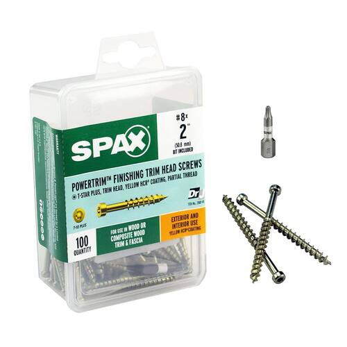 Cabeça de acabamento exterior/interior SPAX #8 x 2 Parafusos compostos de madeira Powertrim Torx T-Star Plus (100 EA) Bit incluídos resistentes à ferrugem