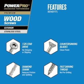 Power Pro 48627 Parafusos de madeira exteriores, #10 x 2-1/5.1 cm, revestido com epóxi, acionamento Torx/Star incluído, rosca grossa, parafusos de deck, resistente à ferrugem ao ar livre, aço