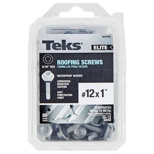 Broca de cabeça de lavadora Teks 21470 #12 x 1” HEX PT Metal-to-Wood Elite Roofing Screws 80CT
