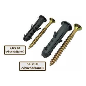 O anúncio inclui: - 50 parafusos 5,0 X 50 Chipboard Chata Phillips Bicromatizado - 50 buchas8 com anel - 50 parafusos 4,0 X 40 Chipboard Chata Phillips Bicromatizado - 50 buchas6 com anel Descrição dos Parafusos: - Parafusos Chipboard com cabeça chata e fenda Phillips nº 2 - Acabamento bicromatizado - Tratamento cementado para aumentar a dureza - Rosca autocortante - Material de aço de baixo carbono 1014 a 1018 Descrição das Buchas: - Buchas de plástico com anel - Feitas de polietileno de alta densidade Esperamos que tenha uma ótima experiência de compra. Marca: Não Informado