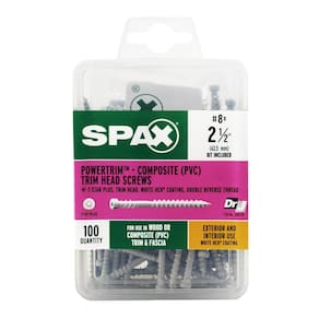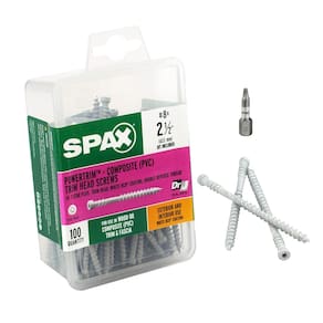 Parafusos compostos de madeira com cabeça de acabamento exterior/interno SPAX #8 x 2-1/2" White Powertrim Torx T-Star Plus (100 EA) incluídos