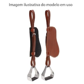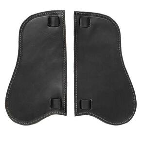 Par de paralamas Bronc-Steel fabricados em couro na cor Preto com parte interna em feltro, com costuras reforçadas e passadores em couro para os loros. Utilizado em selas e arreios com loros de até 3,5cm de largura.