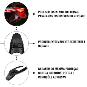 Este paralama traseiro oferece praticidade e versatilidade, podendo ser instalado nos demais paralamas disponíveis no mercado.