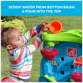 O Step2 Waterfall Discovery Wall também promove a camaradagem e a exploração compartilhada. A parede de água dupla convida muitas crianças a trabalharem juntas, incentivando a interação social e os benefícios da colaboração. Esta parede proporciona horas de prazer educacional devido ao seu divertido conjunto de acessórios de 13 peças, que inclui uma bandeja com cascata, rodas d água, baldes e rampas de labirinto.
