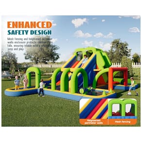 O Pula Pula Inflável Albott é o sonho de toda criança! Com cercas de segurança, paredes reforçadas, tecido Oxford de alta qualidade e costuras resistentes, oferece máxima segurança e durabilidade. Seu design de fluxo de ar contínuo evita superinflação, garantindo diversão sem preocupações. Com área de brincadeira multifuncional, incluindo escorregadores, cesta de basquete, parede de escalada, piscina, pistolas d'água e gol de futebol, proporciona entretenimento interminável. Fácil de montar e guardar, é perfeito para festas, eventos e diversão em família.