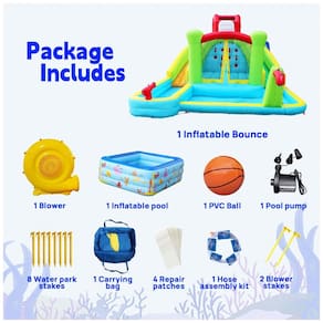 Projetado para Segurança, Construído para Durar. O parque de castelo inflável é feito de materiais atóxicos e inodoros, com fibras de poliéster pesado durável, costuras duplas e revestimento de dupla camada para garantir estabilidade e durabilidade. Cuidadosamente criado para a segurança dos pequenos aventureiros, este brinquedo inflável é projetado para resistir a temporadas de brincadeiras animadas. Confie em sua durabilidade para proporcionar verões infinitos de diversão. Uma Aventura Aquática Espera por Você. Embarque em uma aventura aquática inesquecível com nosso Castelo Inflável. Este playground extraordinário apresenta duplos escorregadores, uma parede de escalada em rocha, um trampolim pula-pula, uma cesta de basquete para enterradas e um oásis aquático para diversão sem fim sob o sol. As cores do castelo colorido fazem com que as crianças sejam envolvidas por um mundo de conto de fadas maravilhoso. Um Sonho de Verão para as Crianças. Aqui é onde os sonhos de verão da infância se tornam realidade! Mergulhe na ampla piscina profunda, participe de épicas batalhas de pistolas de água e desfrute das nossas refrescantes fontes. Seja pulando no trampolim, conquistando a parede de escalada ou descendo pelos escorregadores duplos, é um mundo de diversão para idades de 3 a 10 anos. Diversão Rápida no Quintal. Conecte facilmente com qualquer mangueira de jardim. Você pode inflar e desinflar rapidamente em menos de dois minutos, e pode ser facilmente dobrado para transporte e armazenamento. O inflador de 110-120 V proporciona fluxo de ar contínuo para máxima segurança e conveniência. Equipado com estacas para manter o parque em um estado seguro. Perfeito para Festas e Encontros de Crianças. Organizando um aniversário ou encontro de crianças? Este castelo inflável é um espetáculo que tornará suas reuniões inesquecíveis. Deixe seus filhos e seus amigos explorarem um mundo de imaginação e risos, criando memórias preciosas juntos. Este é como um mundo de conto de fadas dos sonhos, e talvez haja uma experiência de Alice no País das Maravilhas.
