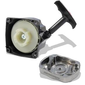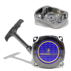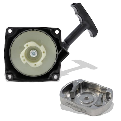 Partida Completa + Arrastador para motor MTM 0TE001 52cc 2 temposPartida com sistema de mola dupla, também conhecido como Partida Fácil, construída com nylon injetado reforçado, resistente á possíveis impactos, que utiliza arrastador do tipo trinquete de formato quadrado.O trinquete pode ir fabricado no material Nylon, Aço ou Alumínio, e a rosca sendo direta nele ou na porca interna, indo conforme disponibilidade em estoque.Marca: MercadopeçasContém:01 Partida01 ArrastadorRecomendações de Uso:- Não existe a necessidade de puxar a partida com força ou de maneira excessiva, para dar partida, puxe o manipulo, aproximadamente 20cm, até que o motor fique despressurizado, após isso volte a partida até a base, puxe contra o peito de maneira firme e rápida.-No máximo 2 ou 3 puxadas são necessárias para dar a partida na máquina, caso não ligue com essas tentativas, pare e verifique outros fatores da máquina.Partida + Arrastador Motor Popa Moghi Jet Turbo 52c - 2t 3hp