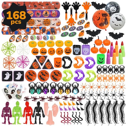 Lembranças assustadoras perfeitas para sua próxima festa! Estas sacolas de Halloween apresentam uma grande variedade de brinquedos em cada bolsa. Cada bolsa é pré-embalada cheia de diversão. Os brinquedos temáticos de halloween incluem esqueletos, aranhas assustadoras, adesivos, pulseiras, piões, cobras de borracha e escorpiões, morcegos e dentes mordidos e muito mais. Há algo para todos. Ótimo para festas de Halloween, projetos e guloseimas de sala de aula. - Valorize várias lembrancinhas de festa para crianças – Estas sacolas de lembrancinhas infantis supervaliosas vêm completas com tudo o que sua próxima celebração assustadora precisa! com 25 tpyes de lembrancinhas de festa de Halloween (168 peças) - Economia de tempo e esforço para pais e professores – Enfrente a dificuldade de coletar e escolher sacolas de presentes para crianças ou prêmios para festas de Halloween e caixas de prêmios. Todos os brindes de Halloween vêm em um pacote com vários tipos de coleções – Estas bolsas apresentam uma variedade de diversão festiva de Halloween que todas as crianças vão adorar. - Aplicações extensas: perfeito para lembrancinhas de festa de Halloween e recheios de balde de Halloween, enchimentos de sacolas de brindes de Halloween, brinquedos infantis para sala de aula, brinquedos de enchimento de piñata de Halloween, prêmios de baú do tesouro para meninos, presentes de devolução de crianças para festas de aniversário, prêmios de carnaval para crianças em massa, recompensas de salas de aula, brinquedos de sacolas de presentes de Halloween. - Misture e combine – cada bolsa apresenta uma variedade de lembrancinhas divertidas. Misture as bolsas ou escolha suas favoritas. Estes brinquedos também são divertidos de usar em projetos de decoração. - Guloseimas de Halloween sem doces – Estes enchimentos de brindes de Halloween serão uma alternativa atenciosa para aqueles que são alérgicos a doces. Dê doces ou travessuras uma emoção e diversão assustadora. Além disso, estes presentes de Halloween para crianças duram muito mais do que os doces. Não precisa se preocupar com alergias ou crianças com restrições alimentares especiais.