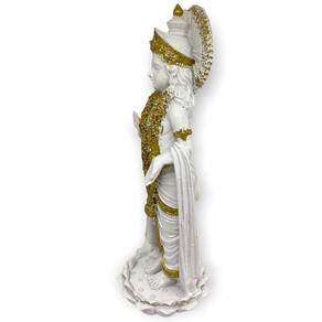 Escultura Parvati na flor de lótus em pé 24 cm branca e dourada em resina - Deusa do Amor