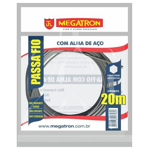 Passa Fio Com Conexao 20 Metros Cinza O Passa fio Megatron é durável, resistente e ível, proporcionando facilidade nas instalações elé Passa Fio com alma de aço; Alma: Cabo de aço latonado; Isolação: Polipropileno; Ideal para: Uso geral; Ean: 7899278907080