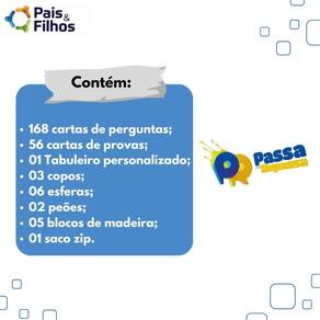 Passa ou Repassa - Pais e Filhos Ref: 793390 Um jogo divertido e desafiador para toda a família Traz perguntas e respostas em um formato inspirado no clássico programa de TV, promovendo momentos de risadas, aprendizado e muita competição saudável entre gerações. Como jogar: O jogo é disputado entre duas equipes azul e amarela e um mediador. Começa com uma prova de habilidade para definir quem inicia. A equipe da vez responde uma pergunta: - Acertou: +50 pontos - Errou: perde todos os pontos e volta ao início - Passou: a outra equipe responde ou repassa de volta Se for repassada de volta, a equipe inicial escolhe: - Responder: acerta = +200 pontos; erra = perde tudo - Pagar uma prova: cumpre = +200 pontos; falha = adversário ganha Vence quem acumular mais pontos Contém: - 168 cartas de perguntas; - 56 cartas de provas; - 01 Tabuleiro personalizado; - 03 copos; - 06 ; - 02 peões; - 05 blocos de madeira; - 01 saco zip. - Marca: Pais & Filhos - Referência: 793390 - Peças para marcação de pontos - Cartas com perguntas divididas por faixa etária - Composição: Papel Cartão, Resina termoplástica e Madeira MDF - Dimensões: 11 x 14 x 19 cm Altura x Largura x Comprimento/Profundidade - INMETRO - Segurança Compulsório - Registro 003770/2019 - Não recomendável para crianças de até 3 três anos, por conter parte s pequena s que pode m ser engolida s ou aspirada s . Homologação Inmetro: CE-BRI/IQB 006332 52225/18-062 Marca: Não Informado Ean: 7908470033906