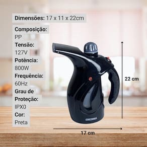 Compacta, leve e funcional, ideal para uso doméstico ou leve. Remove amassados com suavidade em diferentes tipos de tecido, incluindo os mais delicados. Uso direto nas roupas penduradas no cabide, dispensando tábua de passar. Design ergonômico que proporciona conforto durante o manuseio. Estrutura prática e fácil de transportar, perfeita para viagens ou uso no escritório.Tempo de aquecimento