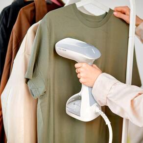 Com 1200W de potência e vazão de vapor de 23g/min, ela desamassa tecidos com facilidade, seja no cabide ou na posição horizontal, garante versatilidade para cortinas, almofadas, sofás e até toalhas.