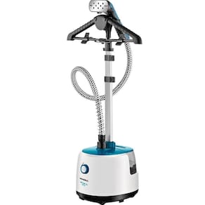 Características: - Dimensões: 30,0 cm x 23,0 cm x 23,7 cm - Peso: 3,7 kg - Bocal com base em aço inox - Suporte para bocal de vapor - Haste regulável, com cabide e prendedores - Desligamento automático - Rodas dianteiras e traseiras - Reservatório de 2,1 litros - Mangueira com cobertura isolante