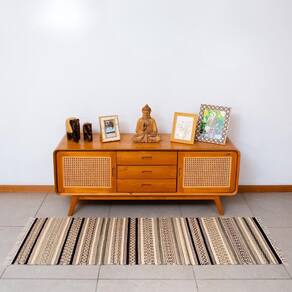 Passadeira chicago 100% algodão 60cmx180cm Cor: preto Passadeira chicago 100% algodão 60cmx180cm A passadeira chicago é perfeita para compor a decoração do ambiente. Você pode usá-la na sala, no hall de entrada ou no quarto deixando o ambiente mais aconchegante e confortável. Escolha a sua favorita. Material: 100% algodão Cores disponíveis: azul & cinza com tons variados de cinza e azul / preto & creme com tons de cinza / bordô & off white com cinza e marinho Peso: aproximadamente 1,4kg Largura: 60cm Altura: 1,80m Origem: índia Este é um produto artesanal e da india. Pode apresentar pequenas variações de cor, tonalidade, brilho, peso e tamanho. Lave a sua passadeira separadamente. Use sabão neutro. Não deixe de molho, nem use alvejante. Não passe com ferro quente sem proteção. Cuide da sua passadeira com carinho. Foto ilustrativa. Produtos adicionais utilizados na composição da foto devem ser comprados separadamente. Marca: Não Informado