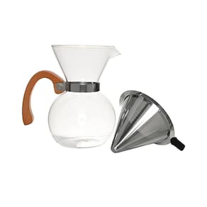 Passador Café Vidro Coador Alça Madeira 650ml Mimo Style