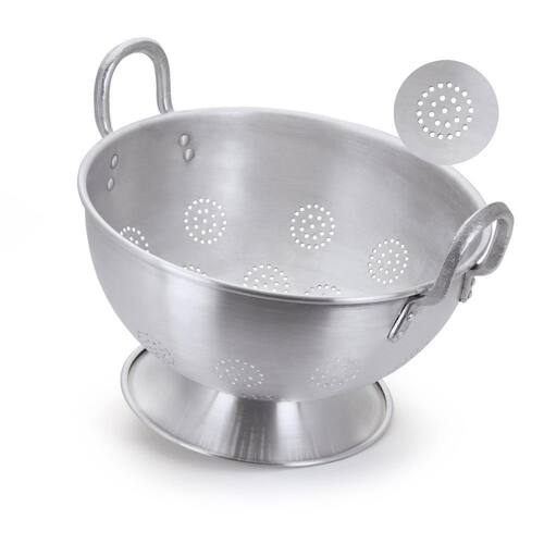 Passador Escorredor de Macarrão Grande em Alumínio Industrial Hotel 35cm 9,25 Litros Passador Escorredor de Massa Profissional Hotel Alumínio 35cm Passador e Escorredor de Massa e Macarrão grande profissional em alumínio polido, reforçado. Com furo nas laterais e na parte de inferior.Garante maior durabilidade, com alças nas laterais para facilitar o manuseio na hora de escorrer a massa, é um item indispensável nas cozinhas industriais. Prepare massas deliciosas para seus clientes ou convidados com o Passador Escorredor Profissional. Recomendação: Lave sempre em água morna e sabão, para remover quaisquer resíduos provenientes do polimento da peça. CaracterísticasAltura: 22cmDiâmetro: 35cmLargura: 37 cmComprimento: 43cmCapacidade: 9,25 Litros