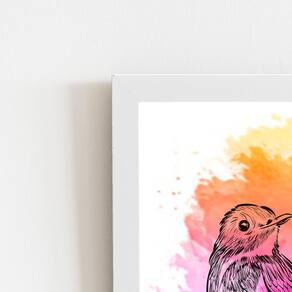 Passarinho Aquarela Colorido Quadro Moldura Branca 60X40Cm