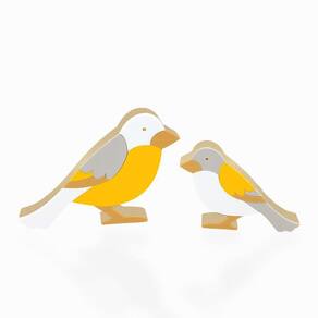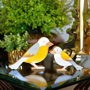 Passarinhos Em Madeira Decoryou - Ref 314 Amarelo Quantidade: 2 peças MATERIAL: Madeira e Acrílico. TAMANHO: 13,5 x 19 x 3,2cm e 10 x 14,1 x 3,2cm